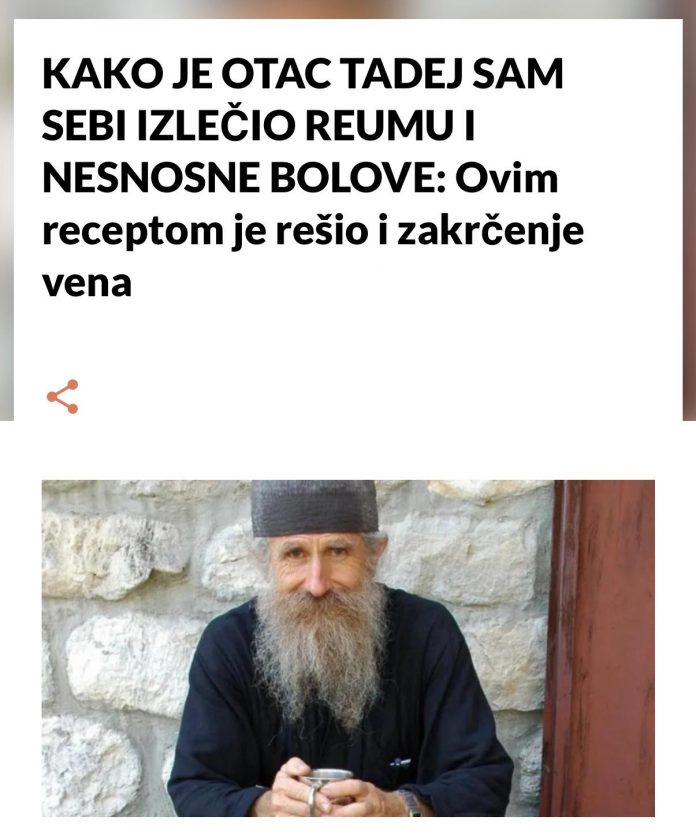 U današnjem članku vam pišemo o tome kako je otac Tadej, poznati pravoslavni duhovnik, pronašao svoje rješenje za reumu i nesnosne bolove koje su mu godinama nanosili ogromne probleme.Saznajte…