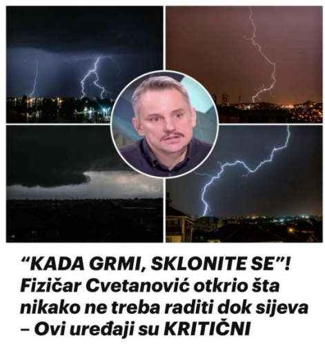 - Svaka grmljavinska oluja nosi sa sobom prijetnju, ali i mogućnost da se na vrijeme pripremimo i zaštitimo. Najvažnije je shvatiti da munja nije samo spektakularan prirodni fenomen, već ozbiljna prijetnja koja može imati fatalne posljedice ako ne poduzmemo odgovarajuće mjere. Dr. Cvetanović nas podsjeća na jednostavne, ali ključne smjernice ponašanja: ostanite u zatvorenom prostoru, izbjegavajte visoke objekte i vodene površine, te se odmaknite od grupiranja.